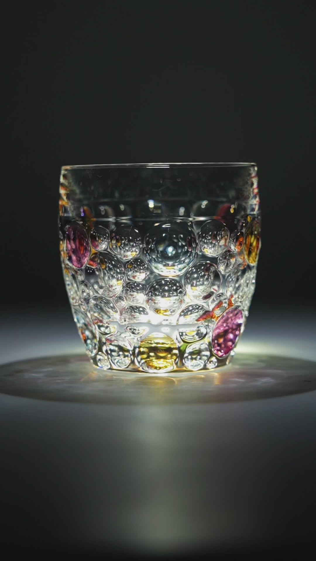 Imported from the heart of Bohemia—Europe's renowned crystal glass region in the Czech Republic—each piece celebrates the storied tradition of Bohemian glassmaking, a craft perfected over centuries. Made from hand-cut Czech crystal, the glass features a distinctive textured surface adorned with brilliant multicolored gemstone-like accents in vibrant red, golden yellow, and sapphire blue that enhance light refraction, creating a mesmerizing display of brilliance with every pour.