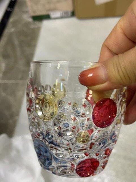 The intricate raised pattern, applied with precision and artistry by skilled artisans, elevates this glass to a new level of elegance and prestige. The vibrant colored embellishments add a touch of opulence and contemporary artistry, presenting a luxurious canvas that transforms every sip into an unforgettable experience.