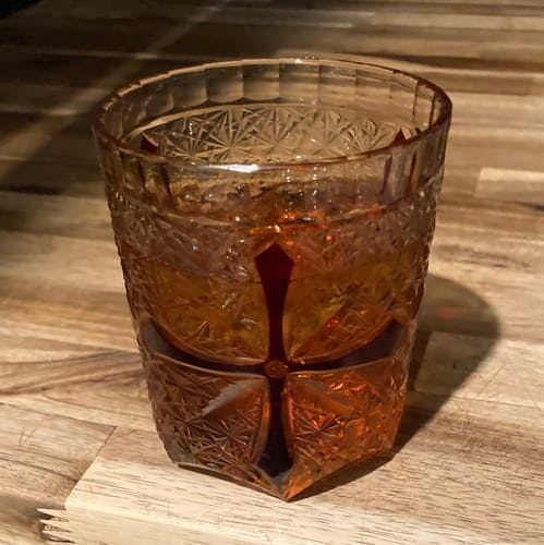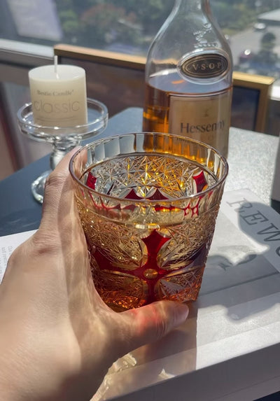 Edo Kiriko Hand-Carved Amber-Red Cross Whiskey Glass – An Intersection of Light and Legacy
