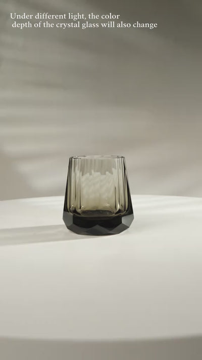Edo Kiriko Hand-Carved Smoky Quartz Zeus's Stone Lead-Free Premium Crystal Whiskey Glass – A Masterpiece of Facets and Thunder