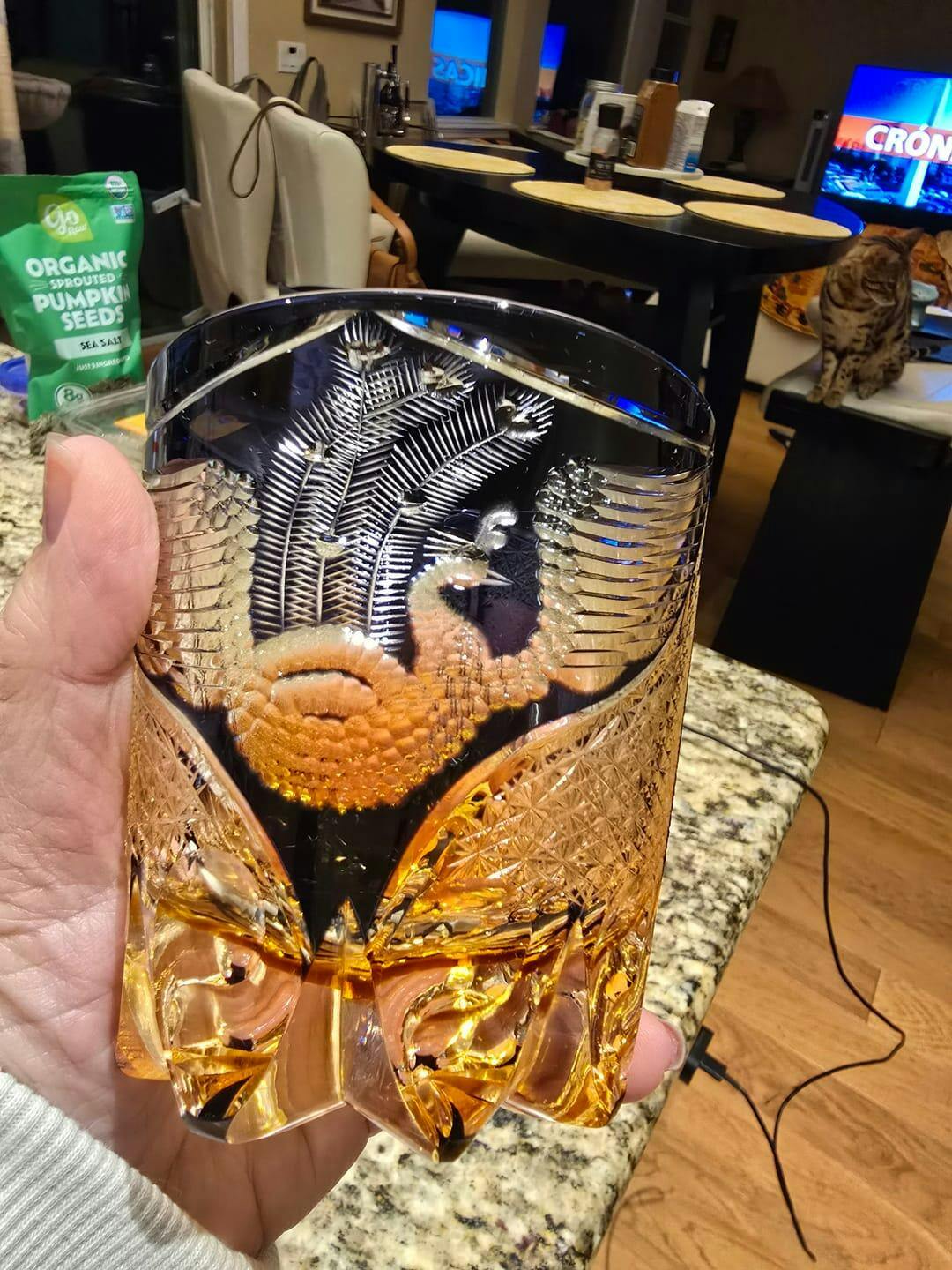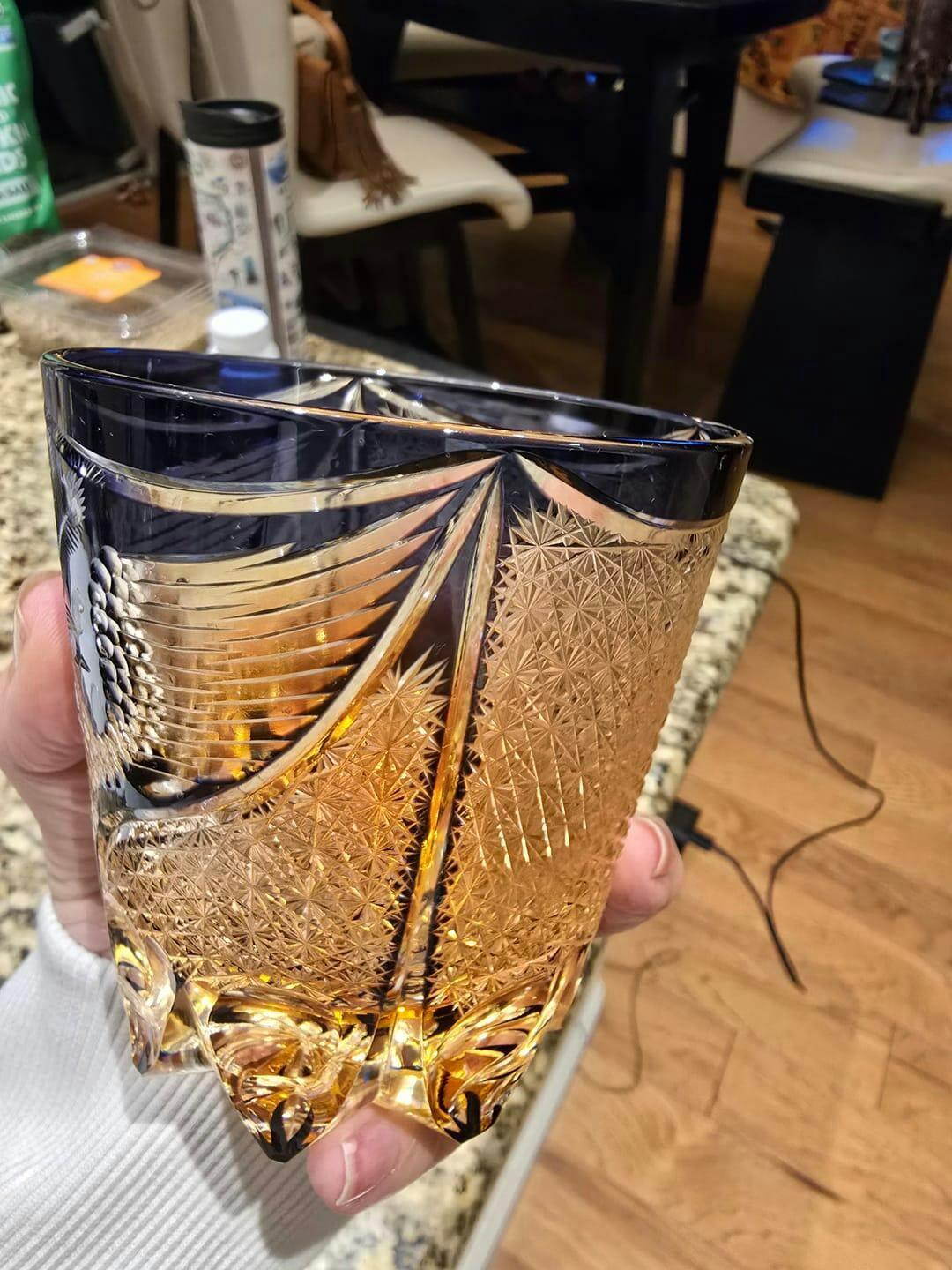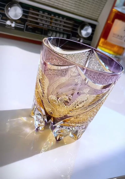 Edo Kiriko Hand-Carved Dancing Phoenix Whiskey Glass – A Soaring Symphony in Crystal