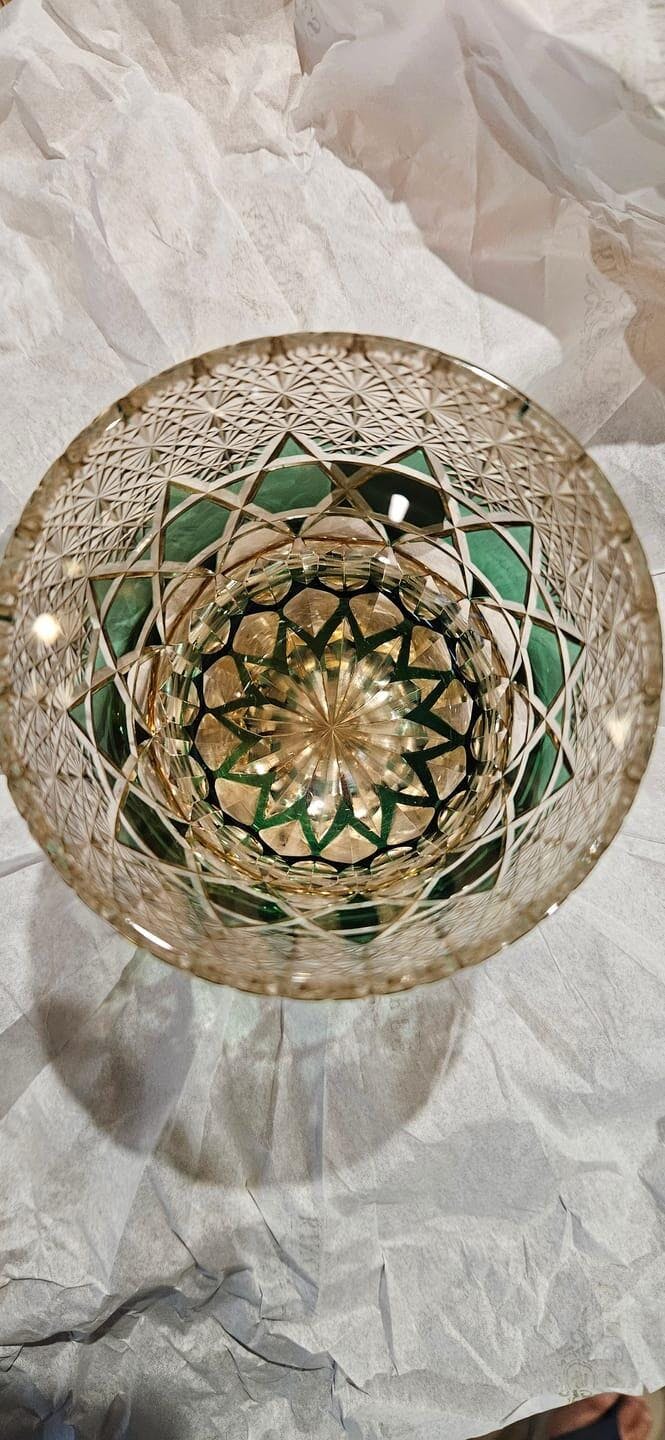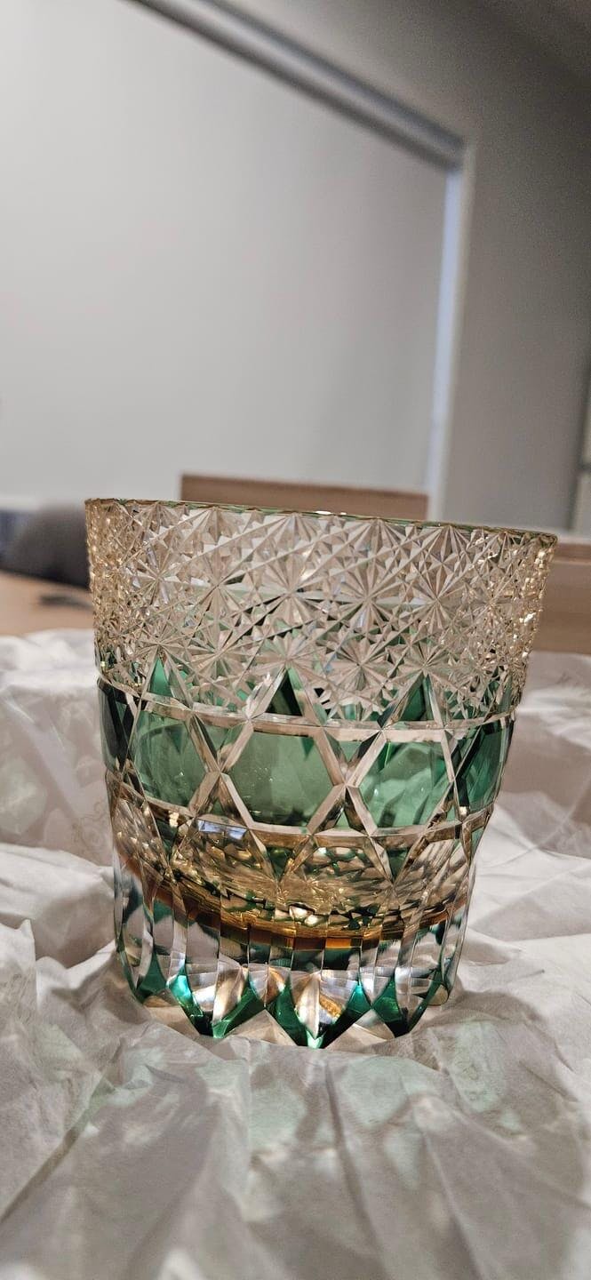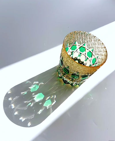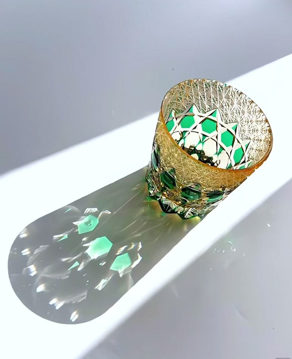 Edo Kiriko Hand-Carved Emerald Fluorite Whiskey Glass – A Verdant Glimmer of Radiance