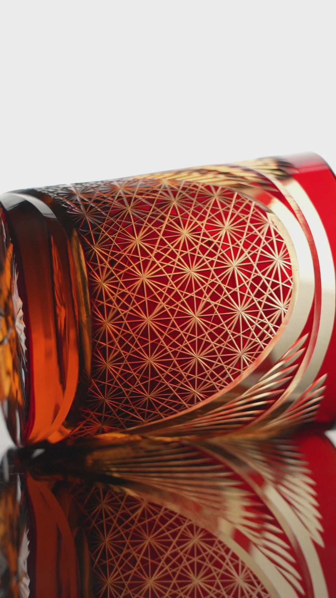 Edo Kiriko Amber-Red Cross Whisky Glass – Hand-Carved Premium Crystal Glass | Light & Legacy