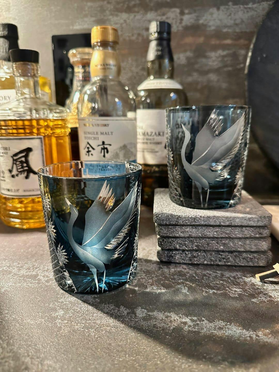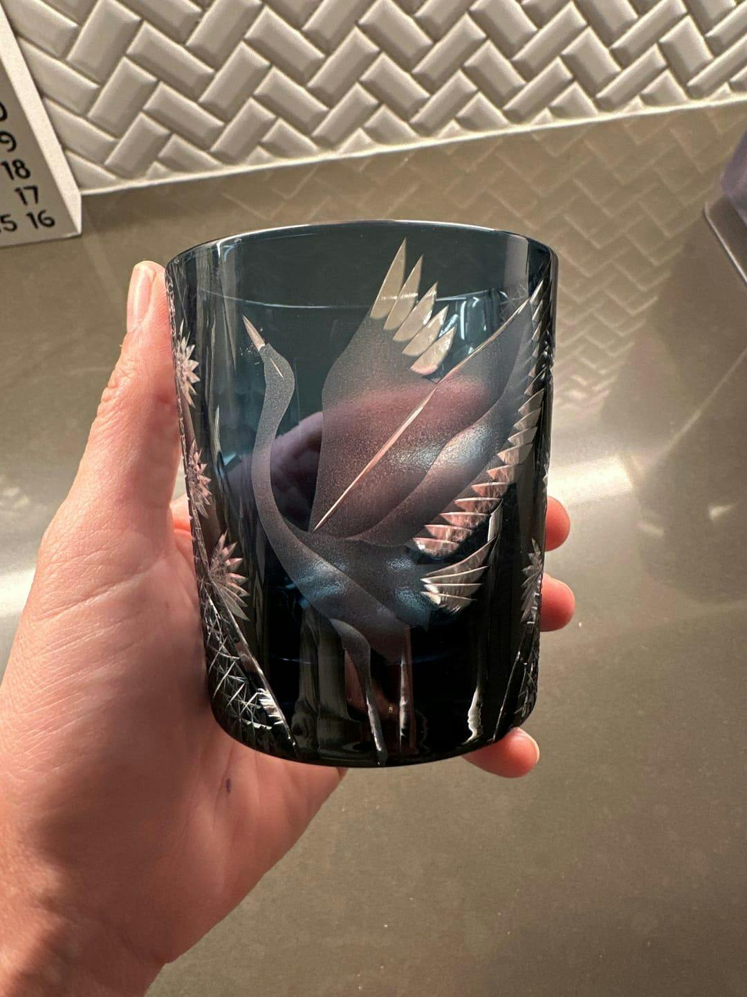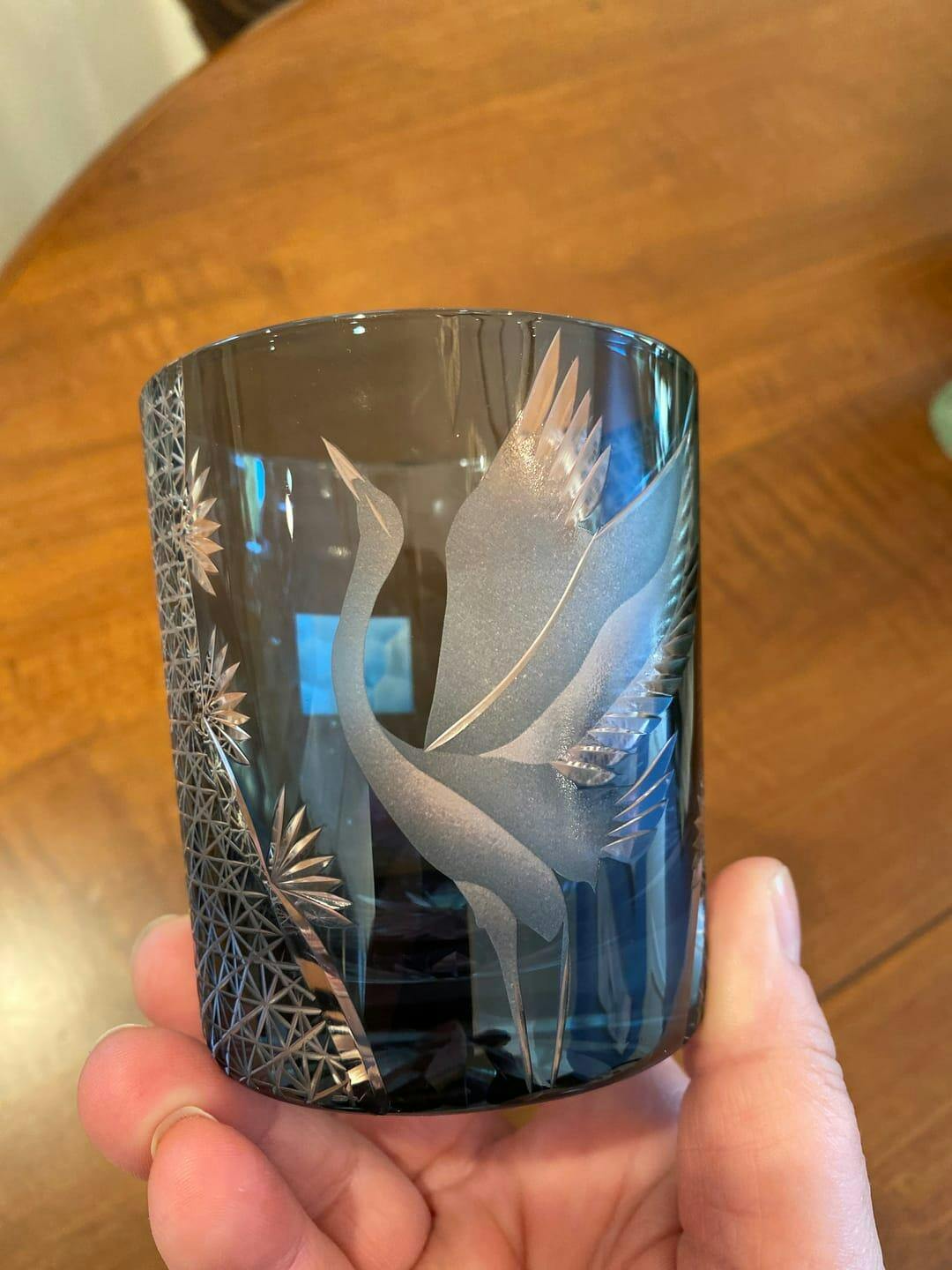 Edo Kiriko Hand-Carved Soaring Crane Whisky Glass – A Symbol of Grace in Flight
